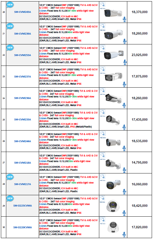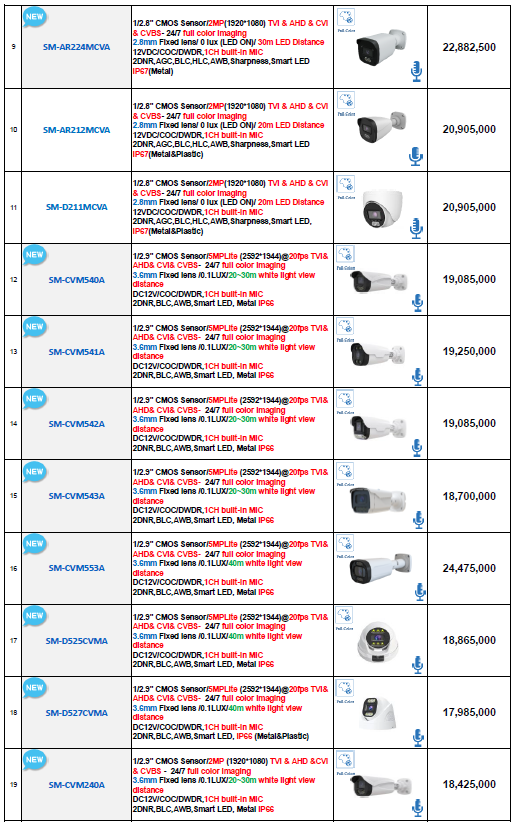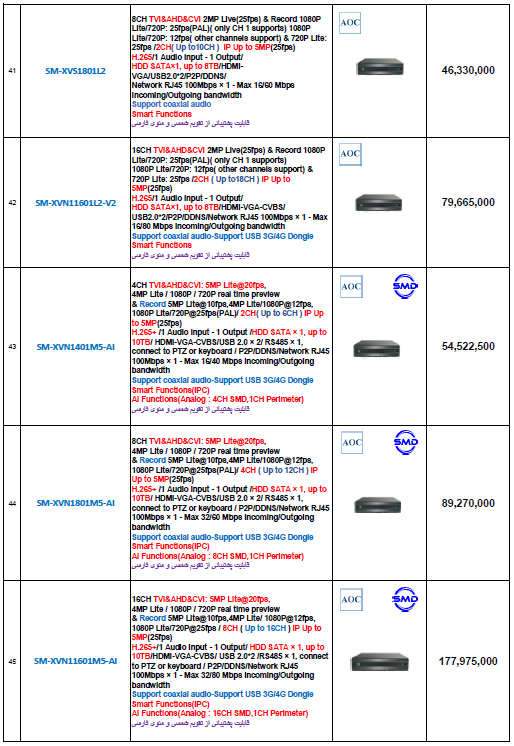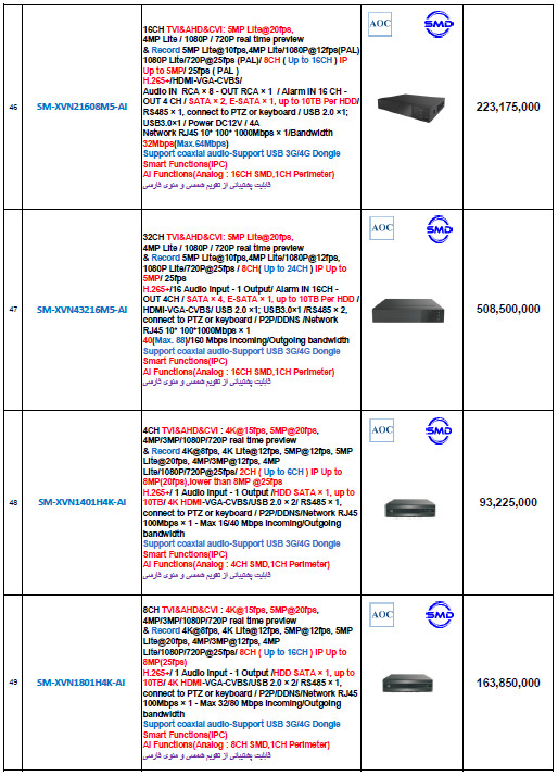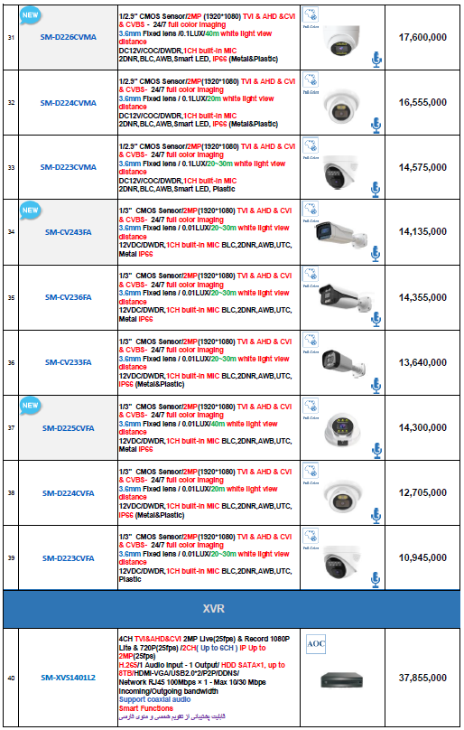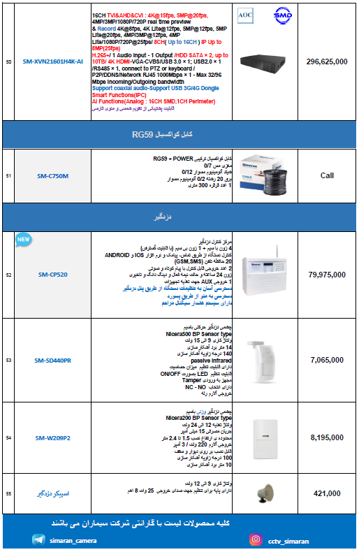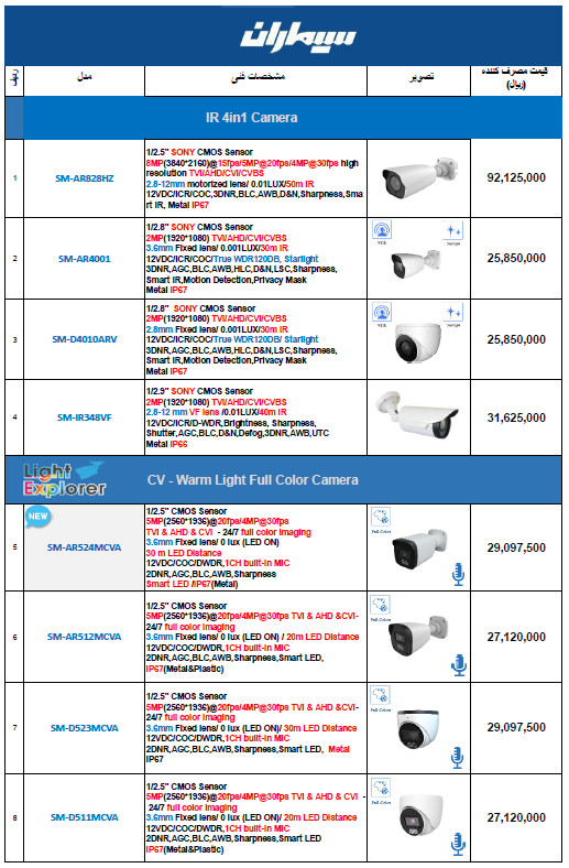 دانلود لیست قیمت دوربین AHD سیماران – اردیبهشت 1404